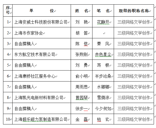 上海市作家協會2020年會員發展工作自1月份始。通過新會員發展審批委員會審議和投票,并報黨組和主席團審核,擬發展會員52名。 為加強社會監督,現將名單予以公示。公示時間:2020年11月16日至11月22日。 如公示名單中有涉嫌抄襲、剽......