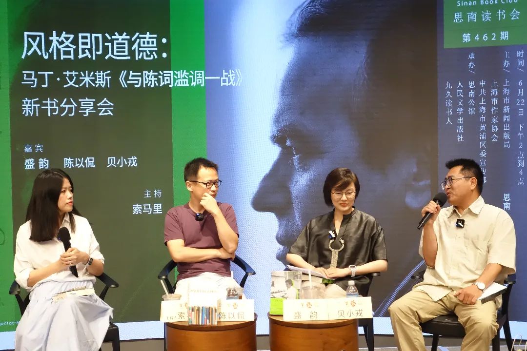 從左至右為索馬里、陳以侃、盛韻、貝小戎 撰稿:王瑞琳 6月22日下午,馬丁?艾米斯《與陳詞濫調一戰》一書的譯者盛韻,與作家陳以侃、書評人貝小戎、另一譯者索馬里做客思南讀書會地462期,暢談書評里的文學洞見與寫作風格。索馬......