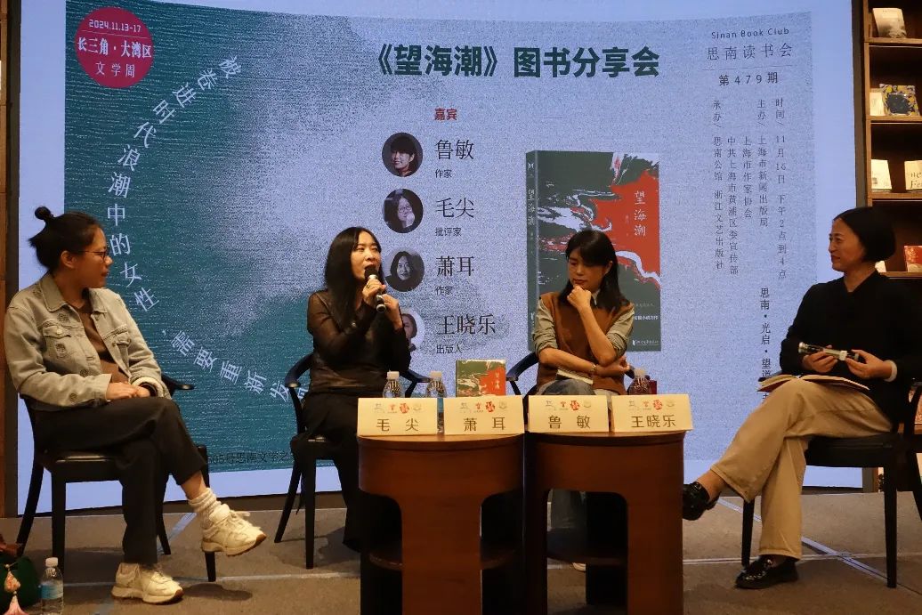 從左至右為毛尖、蕭耳、魯敏、王曉樂 11月16日下午,作家蕭耳攜長篇小說《望海潮》做客思南讀書會第479期,與作家魯敏、批評家毛尖、出版人王曉樂一同探討女性在文本與現實生活中的自我探索與自我救贖。王曉樂擔任主持。 灰色地......