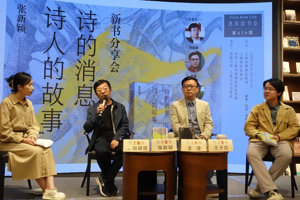 從左至右為胡曦露、張新穎、金理、王子瓜 10月19日下午,復旦大學中文系教授張新穎攜其新書《詩的消息,詩人的故事》與復旦大學中文系教授金理、青年詩人王子瓜一同做客思南讀書會第474期,帶領讀者重釋經典之美。編輯胡曦露擔任......