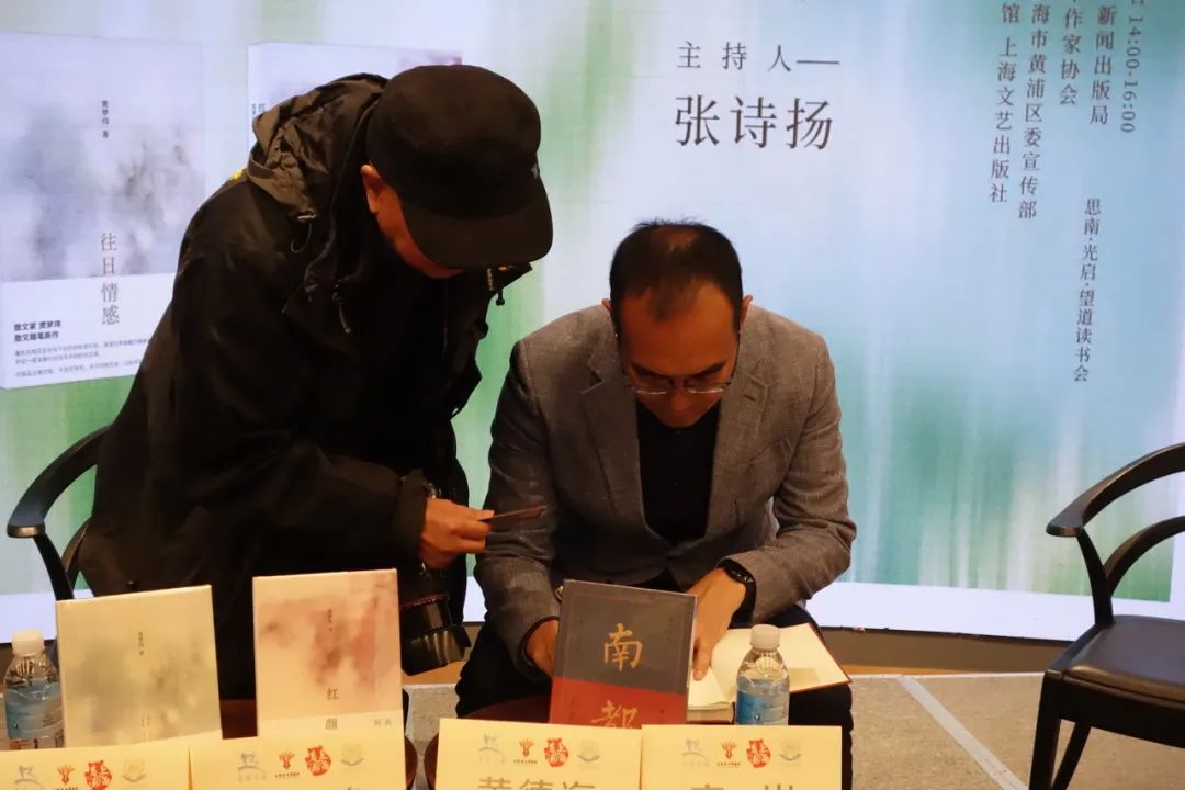 活動(dòng)最后,張?jiān)姄P(yáng)總結(jié):“文學(xué)不是奢侈品,而是照亮人心的火種?!痹诤炇坶L(zhǎng)隊(duì)中,讀者們手持新書,與作者暢談。