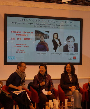 2014年3月23日中午,在巴黎圖書沙龍的上海展區(qū),上海女作家秦文君、陳丹燕和法國作家 Fredenc EDELMANN 同臺對談《上海:歷史、建筑和人》。對談結(jié)束后兩位女作家為讀者簽名并交談。 ……