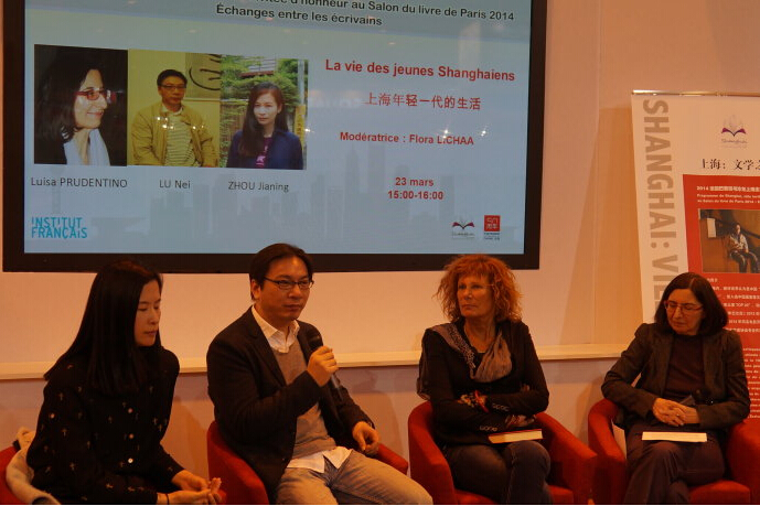 2014年3月23日下午,上海年輕作家路內和周嘉寧與法國女作家 Luisa PRUDENTINO 在巴黎圖書沙龍上一起對談《上海年輕作家的生活》。對談結束后,路內和周嘉寧為讀者進行簽名售書。